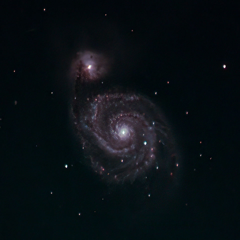 M51 Whirlpool Galaxy. Over sharpened temporary. Live stacked. Happy to have it but first to be replaced.